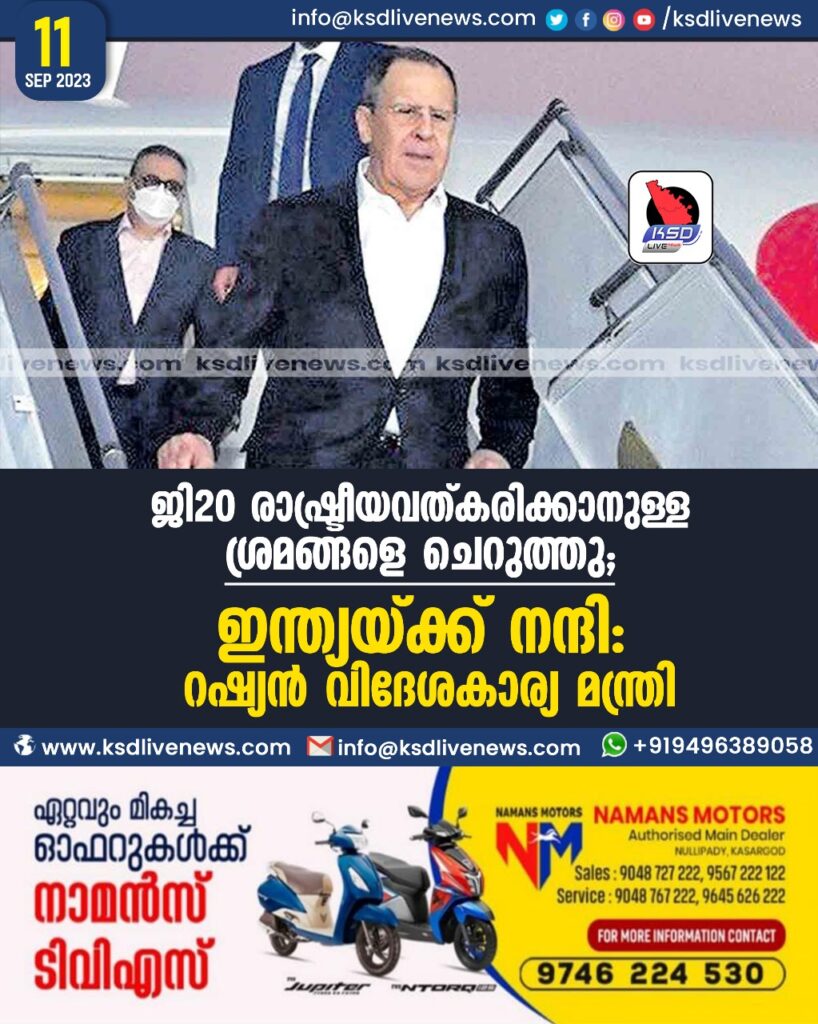 ജി20 രാഷ്ട്രീയവത്കരിക്കാനുള്ള ശ്രമങ്ങളെ ചെറുത്തു; ഇന്ത്യയ്ക്ക് നന്ദി: റഷ്യൻ വിദേശകാര്യ മന്ത്രി