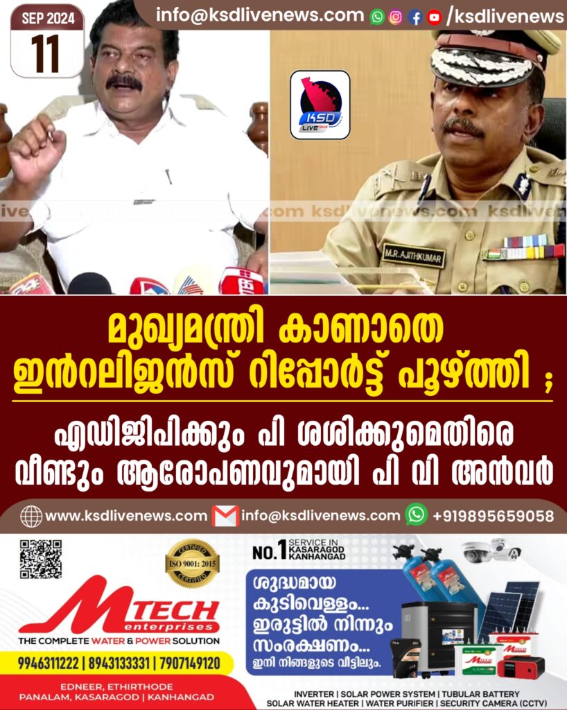 മുഖ്യമന്ത്രി കാണാതെ ഇന്റലിജൻസ് റിപ്പോര്ട്ട് പൂഴ്ത്തി’; എഡിജിപിക്കും പി ശശിക്കുമെതിരെ വീണ്ടും ആരോപണവുമായി പി വി അൻവർ