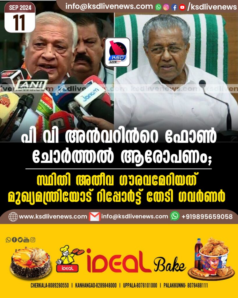 പി വി അൻവന്റെ ഫോണ് ചോര്ത്തല് ആരോപണം; ‘സ്ഥിതി അതീവ ഗൗരവമേറിയത്’, മുഖ്യമന്ത്രിയോട് റിപ്പോര്ട്ട് തേടി ഗവര്ണര്