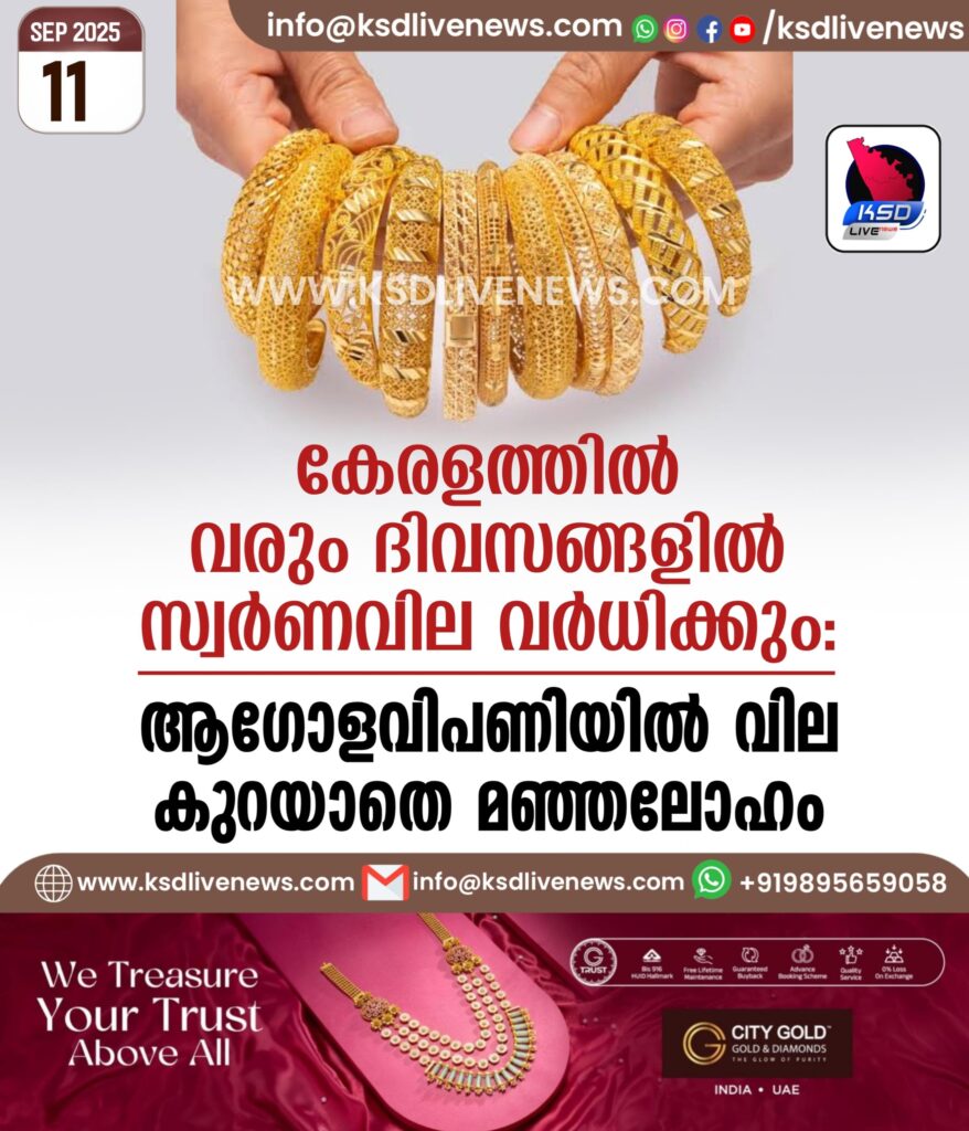 കേരളത്തിൽ വരും ദിവസങ്ങളിൽ സ്വർണവില വർധിക്കും: ആഗോളവിപണിയിൽ വില കുറയാതെ മഞ്ഞലോഹം