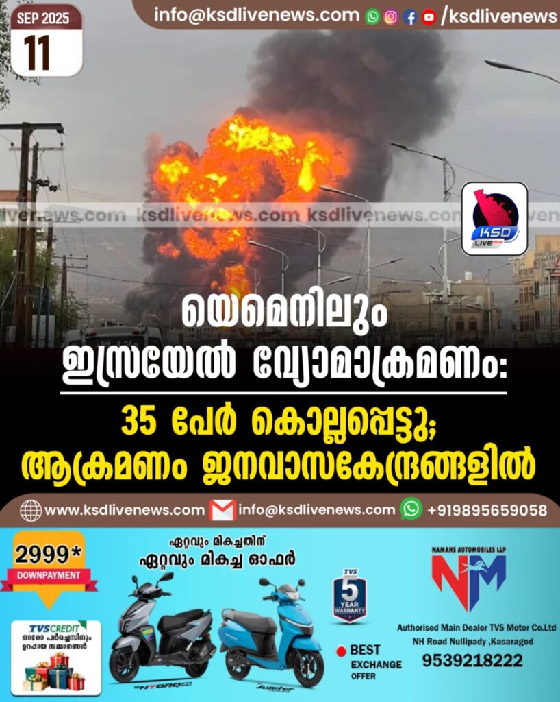 യെമെനിലും ഇസ്രയേൽ വ്യോമാക്രമണം: 35 പേർ കൊല്ലപ്പെട്ടു; ആക്രമണം ജനവാസകേന്ദ്രങ്ങളിൽ