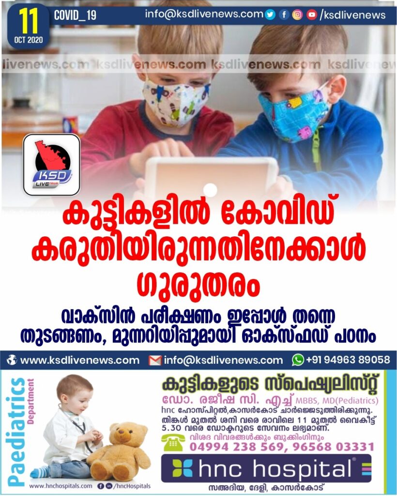 കുട്ടികളിൽ കോവിഡ് കരുതിയിരുന്നതിനേക്കാൾ ഗുരുതരം ; വാക്സിൻ പരീക്ഷണം ഇപ്പോൾ തന്നെ തുടങ്ങണം, മുന്നറിയിപ്പുമായി ഓക്സ്ഫഡ് പഠനം