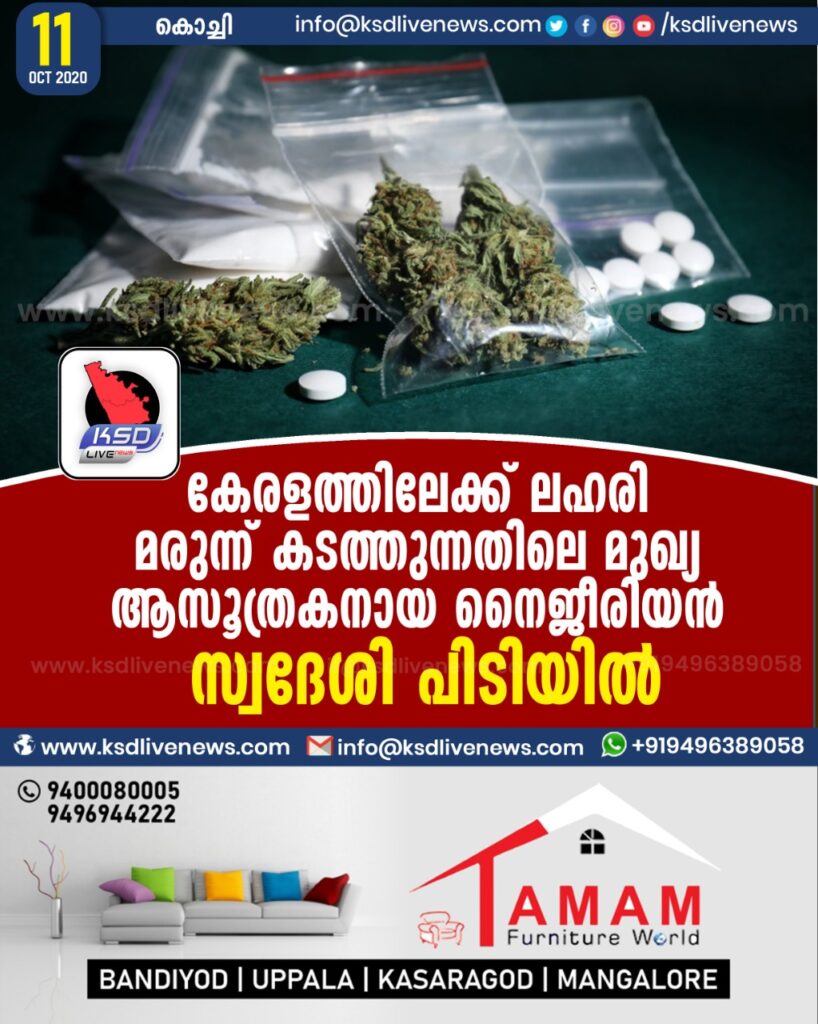 കേരളത്തിലേക്ക് ലഹരി മരുന്ന് കടത്തുന്നതിലെ മുഖ്യആസൂത്രകനായ നൈജീരിയൻ സ്വദേശി പിടിയിൽ