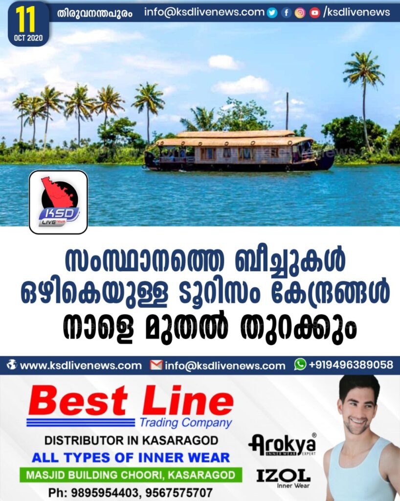 സംസ്ഥാനത്തെ ബീച്ചുകൾ ഒഴികെയുള്ള ടൂറിസം കേന്ദ്രങ്ങൾ നാളെ മുതൽ തുറക്കും