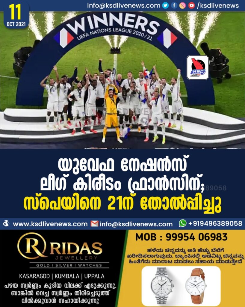 യുവേഫ നേഷന്സ് ലീഗ് കിരീടം ഫ്രാന്സിന്; സ്പെയിനെ 2-1ന് തോല്പ്പിച്ചു
