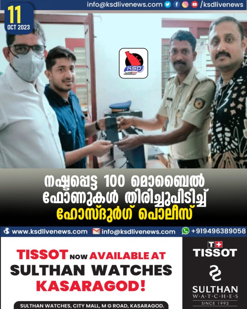 നഷ്ടപ്പെട്ട 100 മൊബൈൽ ഫോണുകൾ തിരിച്ചുപിടിച്ച് ഹോസ്ദുർഗ്