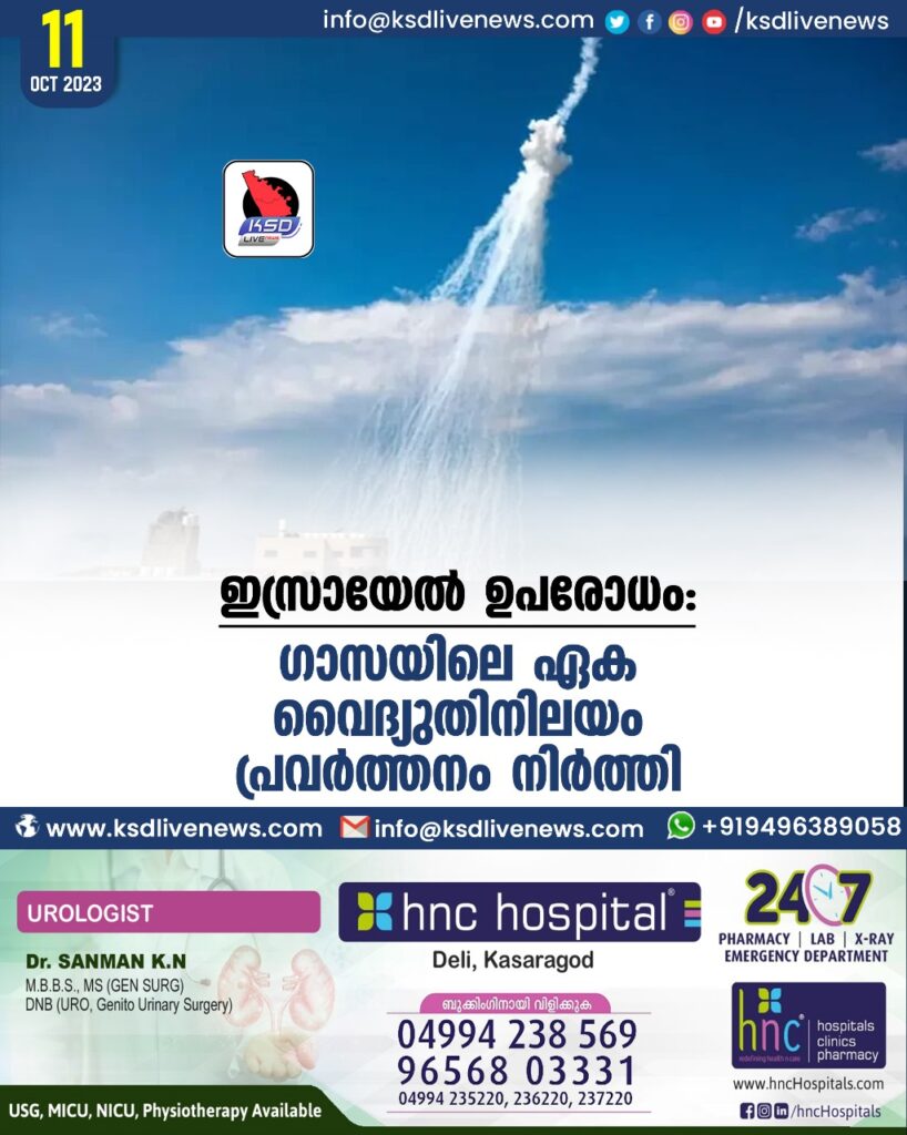 ഇസ്രായേല് ഉപരോധം: ഗാസയിലെ ഏക വൈദ്യുതിനിലയം പ്രവര്ത്തനം നിര്ത്തി
