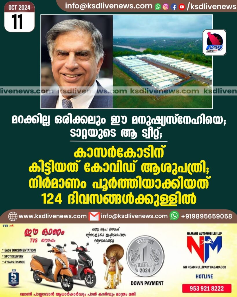 ടാറ്റയുടെ ആ ട്വീറ്റ്; കാസർകോടിന് കിട്ടിയത് കോവിഡ് ആശുപത്രി; നിർമാണം പൂർത്തിയാക്കിയത് 124 ദിവസങ്ങൾക്കുള്ളിൽ