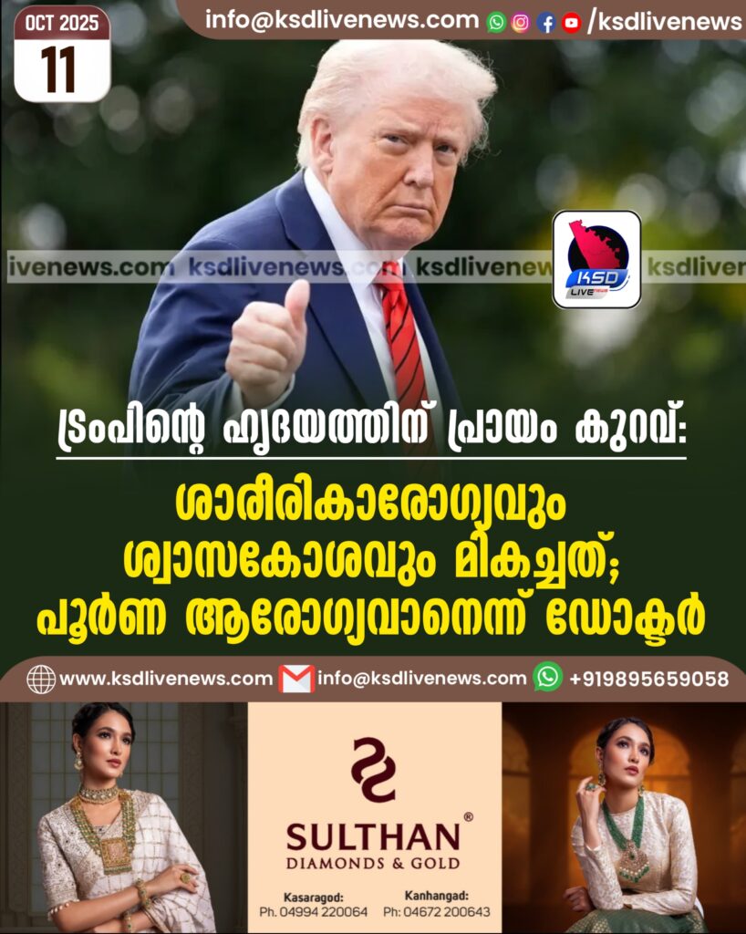 ട്രംപിന്റെ ഹൃദയത്തിന് പ്രായം കുറവ്: ശാരീരികാരോഗ്യവും ശ്വാസകോശവും മികച്ചത്; പൂർണ ആരോഗ്യവാനെന്ന് ഡോക്ടർ