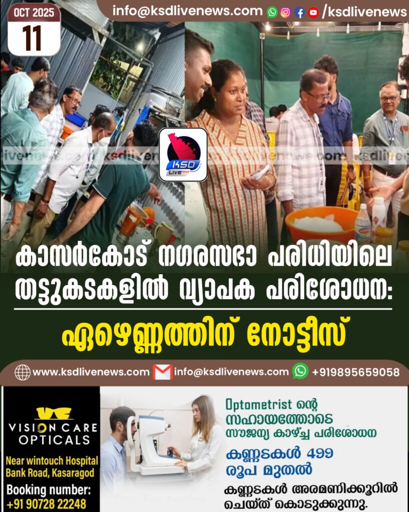 കാസര്കോട് നഗരസഭാ പരിധിയിലെ തട്ടുകടകളില് വ്യാപക പരിശോധന; ഏഴെണ്ണത്തിന് നോട്ടീസ്