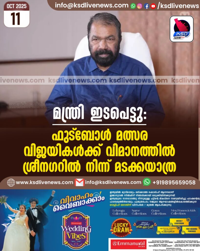മന്ത്രി ഇടപെട്ടു; ഫുട്ബോൾ മത്സര വിജയികൾക്ക് വിമാനത്തിൽ ശ്രീനഗറിൽനിന്ന് മടക്കയാത്ര