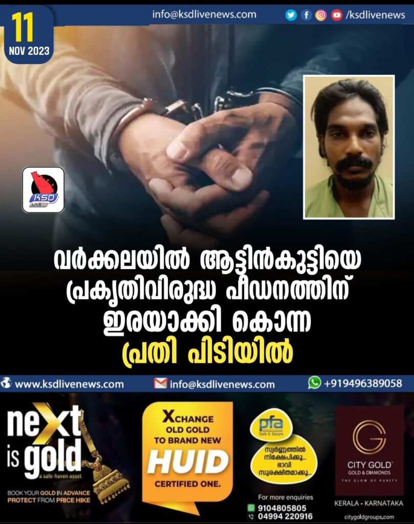 വര്ക്കലയില് ആട്ടിൻകുട്ടിയെ പ്രകൃതിവിരുദ്ധ പീഡനത്തിന് ഇരയാക്കി കൊന്ന പ്രതി പിടിയില്