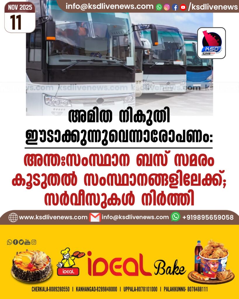 അമിത നികുതി ഈടാക്കുന്നുവെന്നാരോപണം: അന്തഃസംസ്ഥാന ബസ് സമരം കൂടുതൽ സംസ്ഥാനങ്ങളിലേക്ക്; സർവീസുകൾ നിർത്തി
