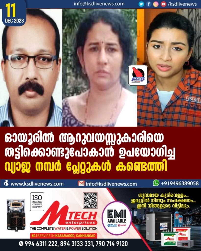 ഓയൂരില് ആറുവയസ്സുകാരിയെ തട്ടിക്കൊണ്ടുപോകാന് ഉപയോഗിച്ച വ്യാജ നമ്പര് പ്ലേറ്റുകള് കണ്ടെത്തി