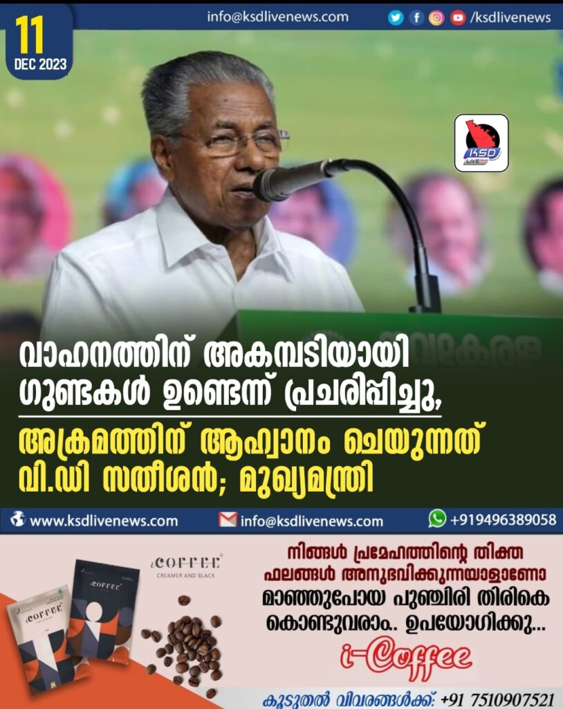 വാഹനത്തിന്‌ അകമ്പടിയായി ഗുണ്ടകൾ ഉണ്ടെന്ന് പ്രചരിപ്പിച്ചു, അക്രമത്തിന് ആഹ്വാനം ചെയുന്നത് വി.ഡി സതീശൻ; മുഖ്യമന്ത്രി