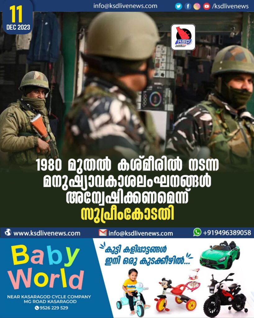 1980 മുതൽ കശ്മീരിൽ നടന്ന മനുഷ്യാവകാശലംഘനങ്ങൾ അന്വേഷിക്കണമെന്ന് സുപ്രീം കോടതി