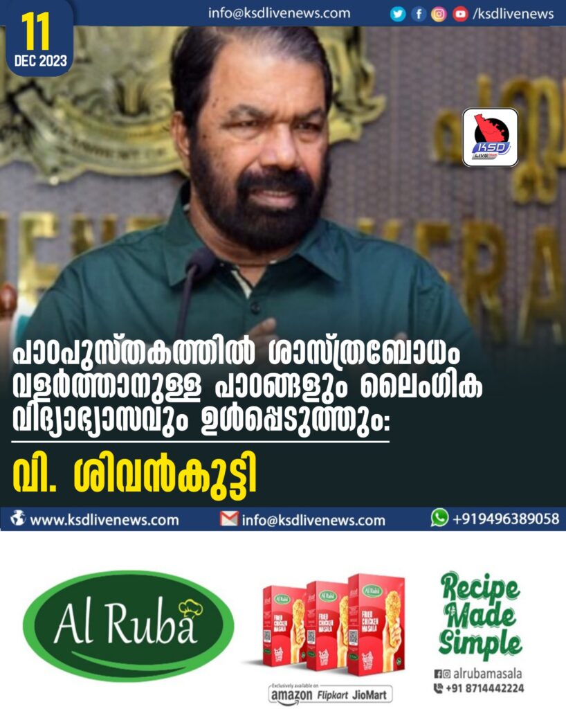 പാഠപുസ്തകത്തില് ശാസ്ത്രബോധം വളര്ത്താനുള്ള പാഠങ്ങളും ലൈംഗിക വിദ്യാഭ്യാസവും ഉള്പ്പെടുത്തും : വി ശിവൻകുട്ടി