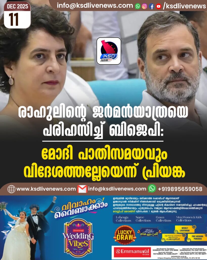 രാഹുലിന്റെ ജർമൻയാത്രയെ പരിഹസിച്ച് ബി.ജെ.പി: മോദി പാതിസമയവും വിദേശത്തല്ലേയെന്ന് പ്രിയങ്ക