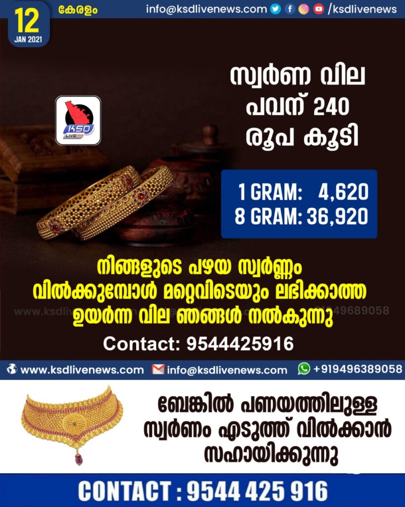 സ്വര്ണവില പവന് 240 രൂപകൂടി 36,920 രൂപയായി