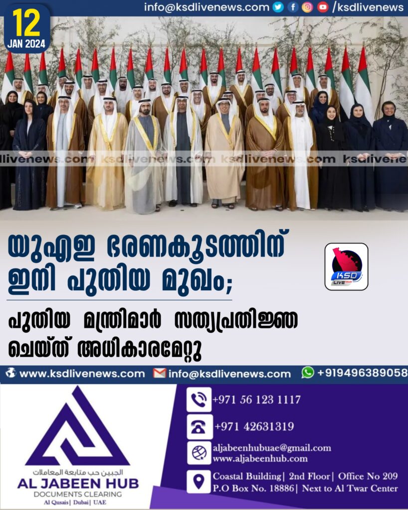 യുഎഇ ഭരണകൂടത്തിന് ഇനി പുതിയ മുഖം; പുതിയ മന്ത്രിമാര് സത്യപ്രതിജ്ഞ ചെയ്ത് അധികാരമേറ്റു