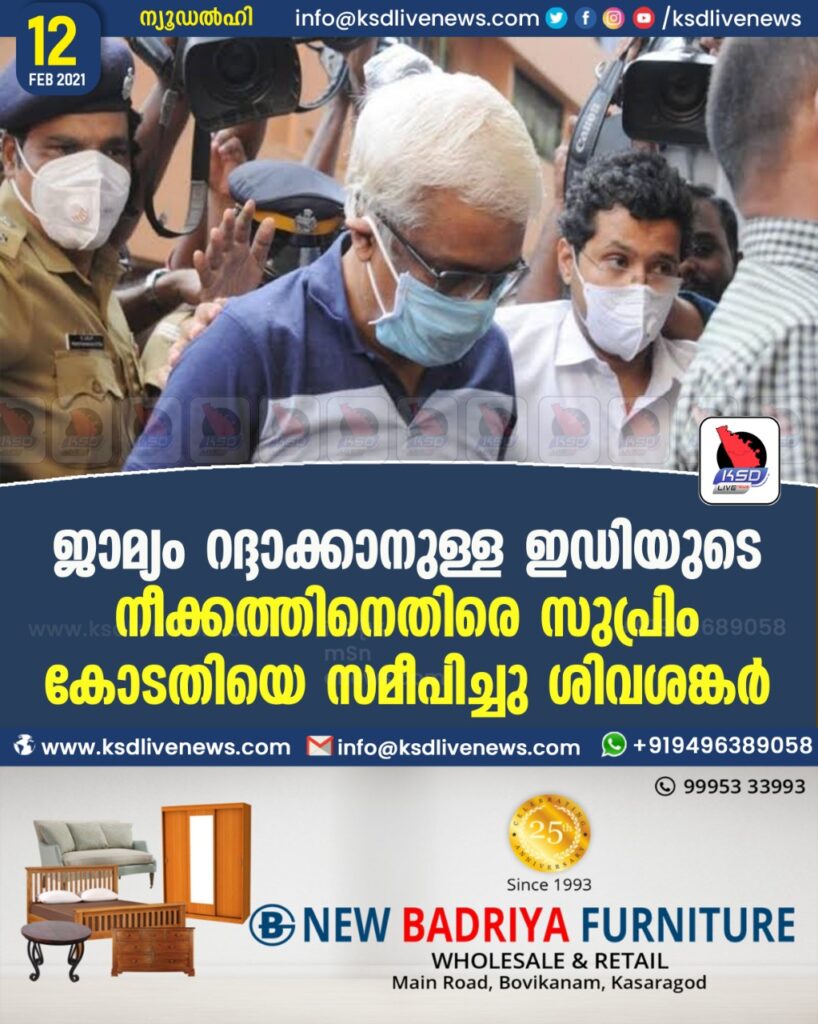ജാമ്യം റദ്ദാക്കാനുള്ള ഇ ഡിയുടെ നീക്കത്തിനെതിരെ സുപ്രിംകോടതിയെ സമീപിച്ചു ശിവശങ്കർ