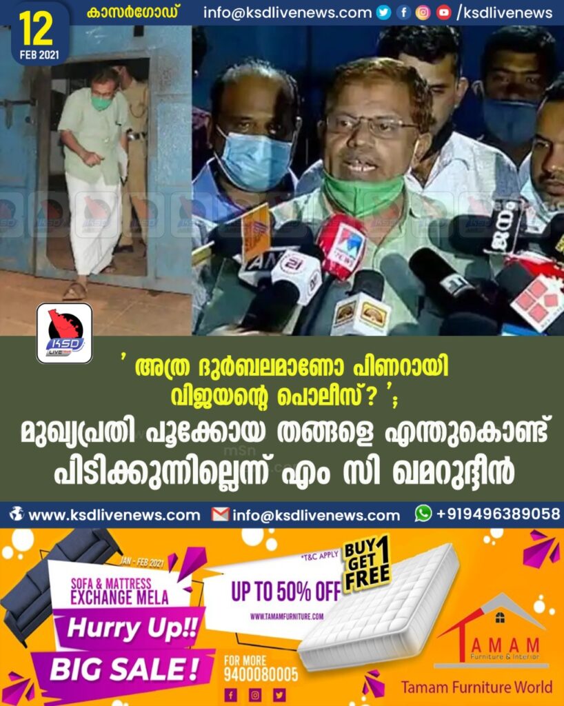 ‘ അത്ര ദുർബലമാണോ പിണറായി വിജയന്റെ പൊലീസ് ? ‘ ; മുഖ്യപ്രതി പൂക്കോയ തങ്ങളെ എന്തുകൊണ്ട് പിടിക്കുന്നില്ലെന്ന് എം സി ഖമറുദ്ദീൻ