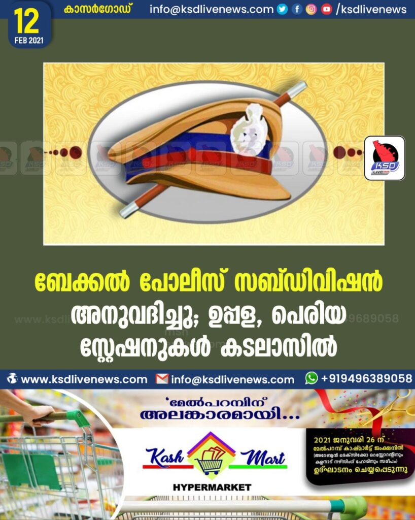ബേക്കൽ പോലീസ് സബ്ഡിവിഷൻ അനുവദിച്ചു ; ഉപ്പള , പെരിയ സ്റ്റേഷനുകൾ കടലാസിൽ