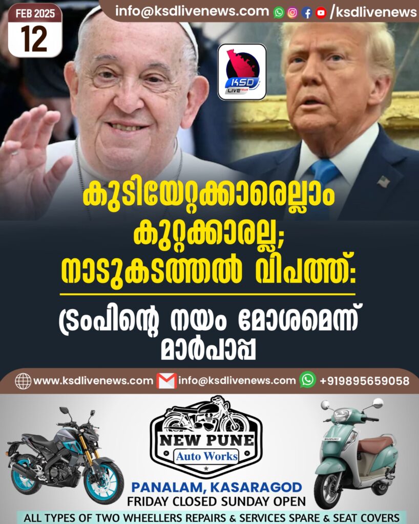 കുടിയേറ്റക്കാരെല്ലാം കുറ്റക്കാരല്ല; നാടുകടത്തൽ വിപത്ത്’: ട്രംപിന്റെ നയം മോശമെന്ന് മാർപാപ്പ