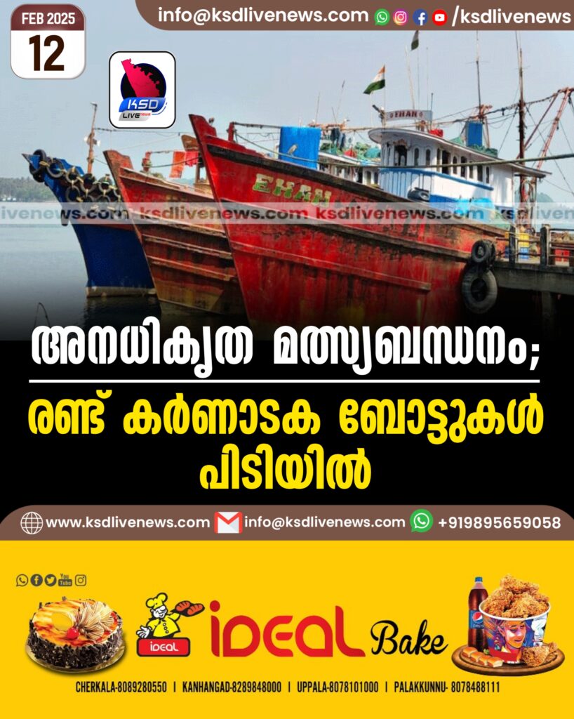അനധികൃത മത്സ്യബന്ധനം; രണ്ട് കർണാടക ബോട്ടുകൾ പിടിയിൽ