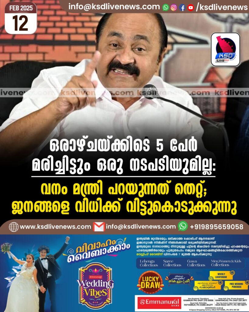 ഒരാഴ്ചയ്ക്കിടെ 5 പേര് മരിച്ചിട്ടും ഒരു നടപടിയുമില്ല; വനംമന്ത്രി പറയുന്നത് തെറ്റ്: ജനങ്ങളെ വിധിക്ക് വിട്ടുകൊടുക്കുന്നു