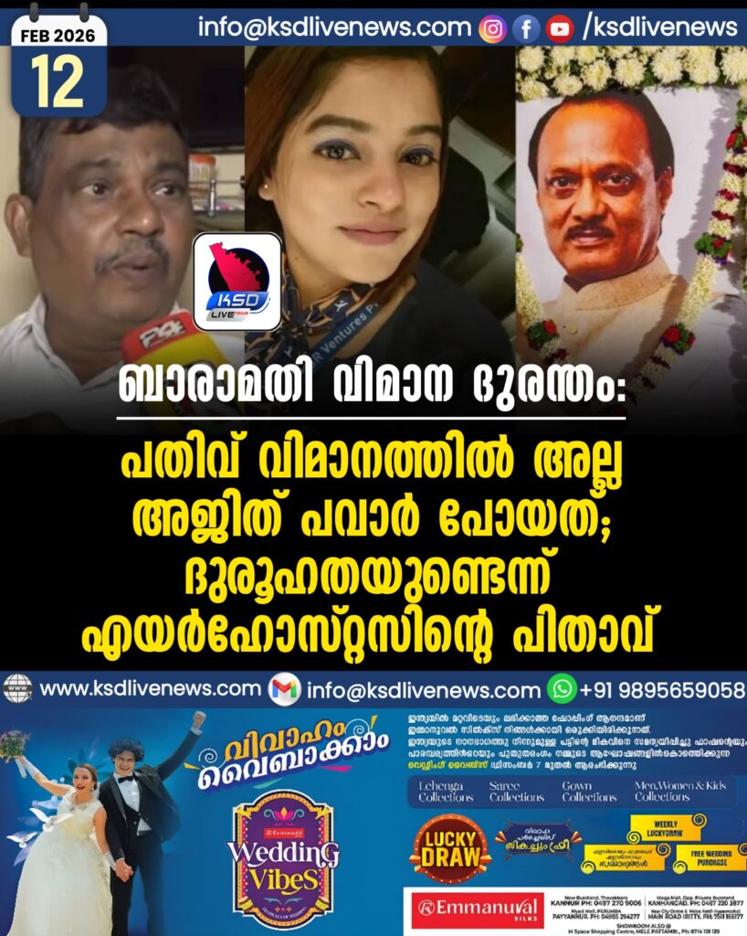 ബാരാമതി വിമാന ദുരന്തം; ‘പതിവ് വിമാനത്തിൽ അല്ല അജിത് പവാർ പോയത്’; ദുരൂഹതയുണ്ടെന്ന് എയർഹോസ്റ്റസിന്റെ പിതാവ്