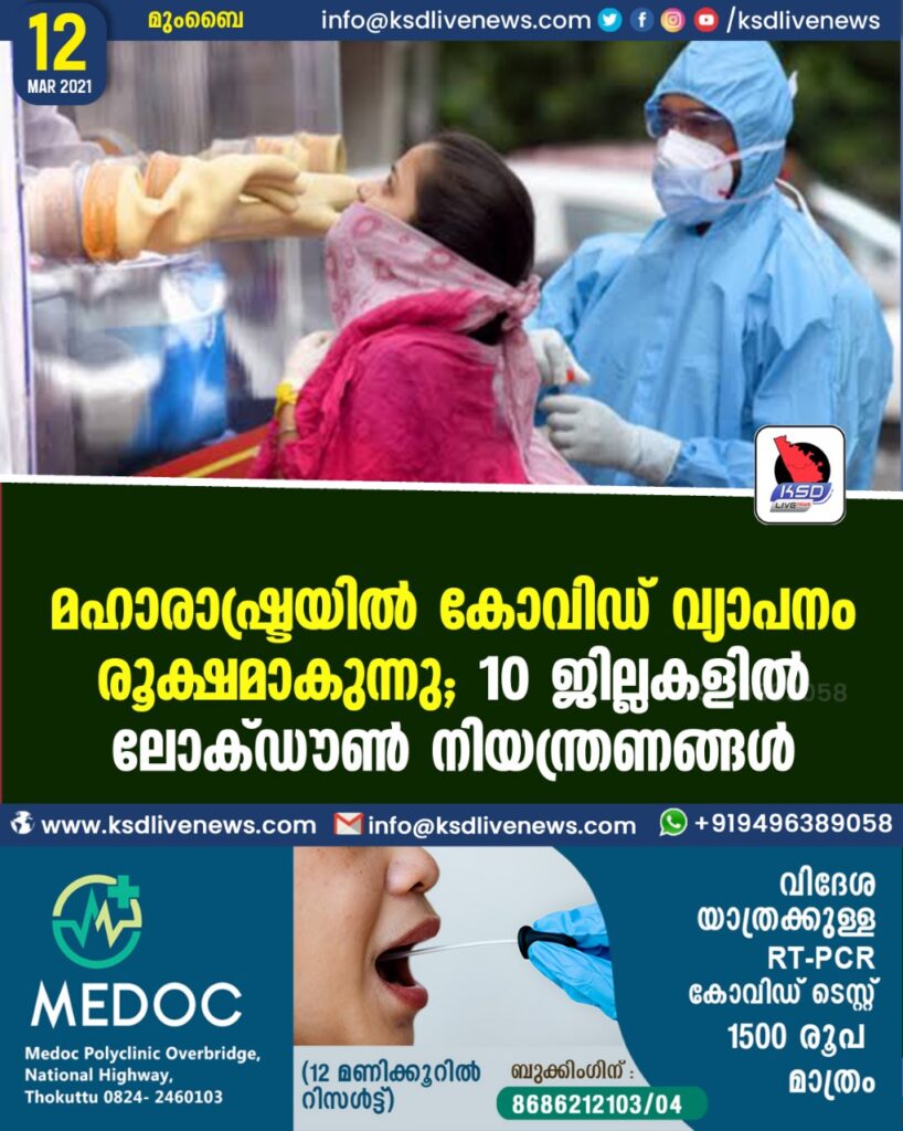 മഹാരാഷ്ട്രയില് കോവിഡ് വ്യാപനം രൂക്ഷമാകുന്നു; 10 ജില്ലകളില് ലോക്ഡൗണ് നിയന്ത്രണങ്ങള്