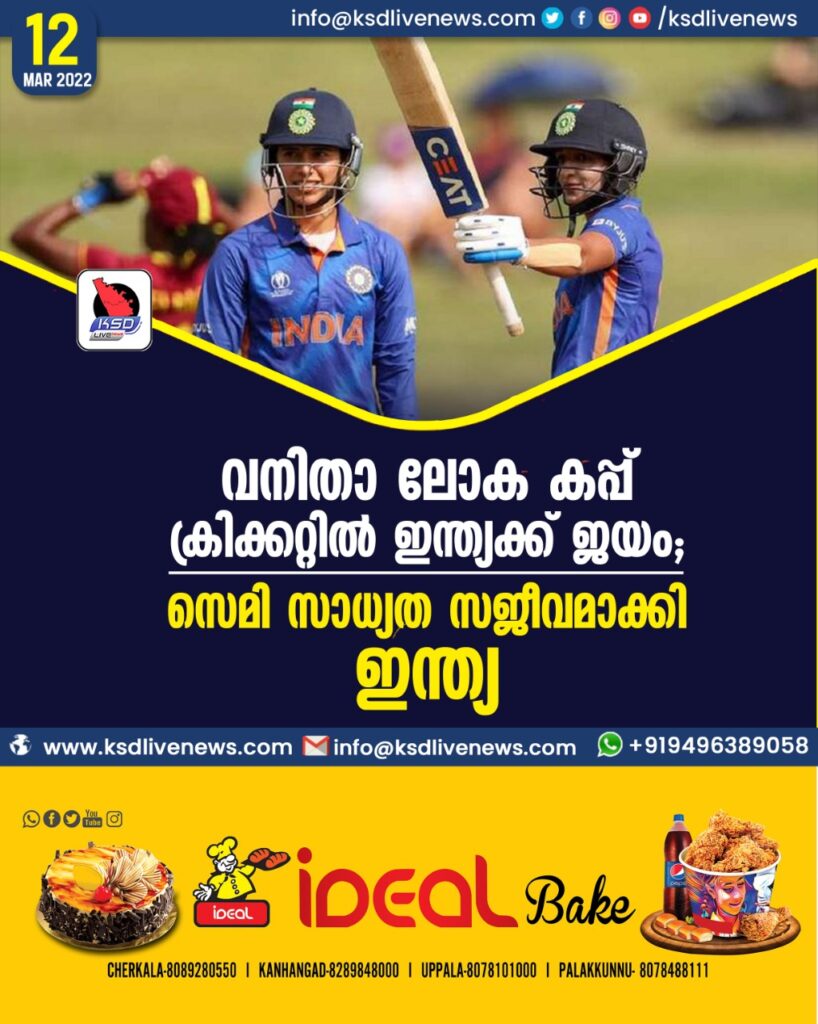 വനിതാ ലോക കപ്പ് ക്രിക്കറ്റില് ഇന്ത്യക്ക് ജയം; സെമി സാധ്യത സജീവമാക്കി ഇന്ത്യ