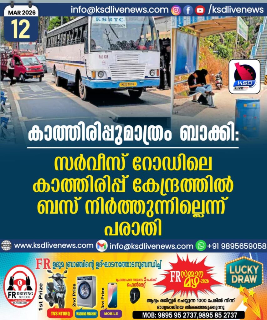 കാത്തിരിപ്പുമാത്രം ബാക്കി: സർവീസ് റോഡിലെ കാത്തിരിപ്പ് കേന്ദ്രത്തിൽ ബസ് നിർത്തുന്നില്ലെന്ന് പരാതി