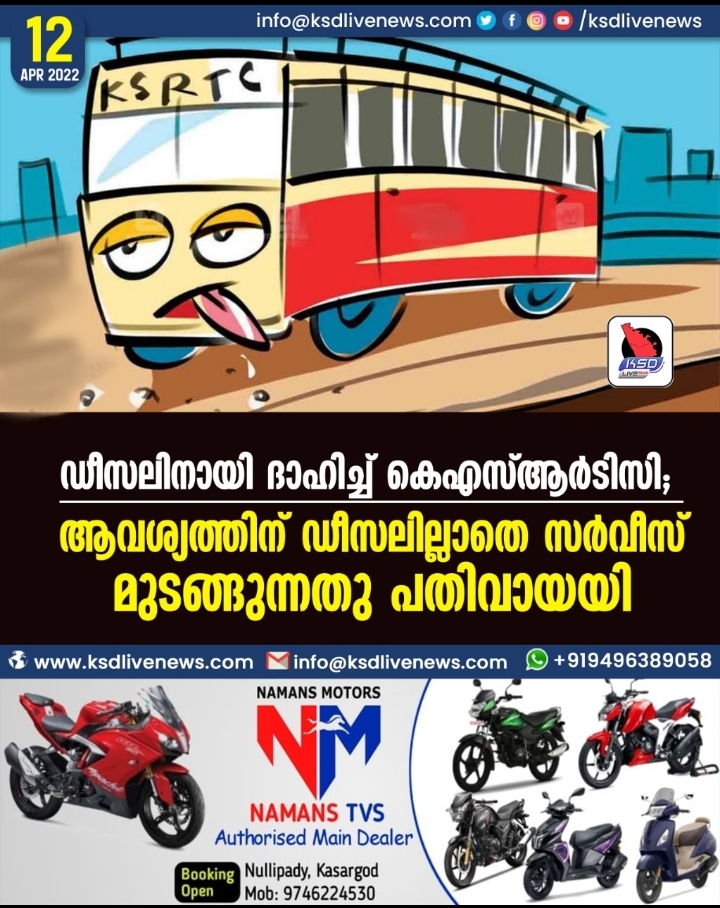 കുടിശികയായി കിടക്കുന്ന തുക കിട്ടാത്തതിനാൽ തുടർന്ന് ഡീസൽ നൽകാൻ കഴിയില്ലെന്ന് ഡീലർ അറിയിച്ചതോടെ ബസുകൾ പലതും ഓടിക്കാൻ കഴിയാതെയായി. ഒടുവിൽ പൊയ്നാച്ചിയിലെ ബങ്ക് ഡീലർ മുഖേന ഇന്ധനം എത്തിച്ചതോടെയാണ് ഇന്നലെ സർവീസുകൾ സാധാരണ പോലെ ഓടിയത്. കെഎസ്ആർടിസിയിൽ നിന്നു പണം ലഭിച്ച് കമ്പനിയിൽ അടച്ചില്ലെങ്കിൽ ഡീലർക്കും ഇന്ധനം കിട്ടില്ല. കെഎസ്ആർടിസി ജീവനക്കാർക്കു ശമ്പളം പോലും സമയത്തു നൽകാൻ കഴിയാത്ത സ്ഥിതിയിൽ ഡീസൽ ചെലവ് നൽകുന്നതിലും കൃത്യത ഉണ്ടാകാത്തത് സർവീസുകൾ തുടർന്നും മുടങ്ങാൻ ഇടയാകും എന്ന ആശങ്കയിലാണ്.