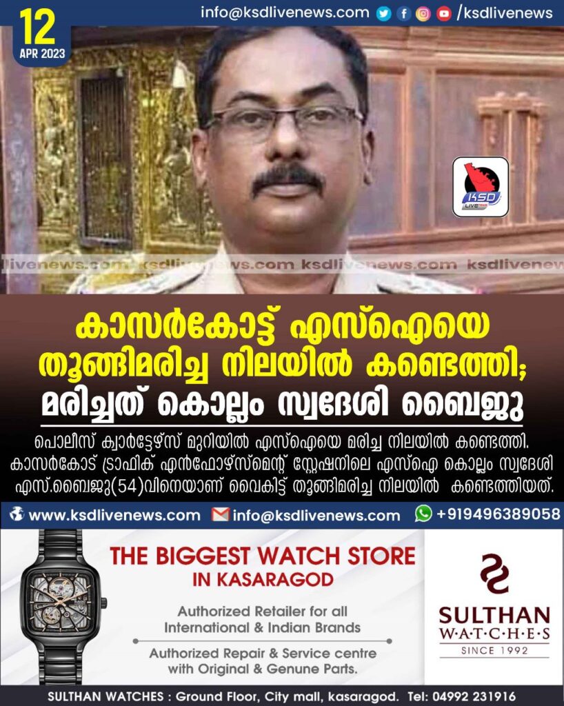 കാസർകോട്ട് എസ്ഐയെ തൂങ്ങിമരിച്ച നിലയിൽ കണ്ടെത്തി; മരിച്ചത് കൊല്ലം സ്വദേശി ബൈജു