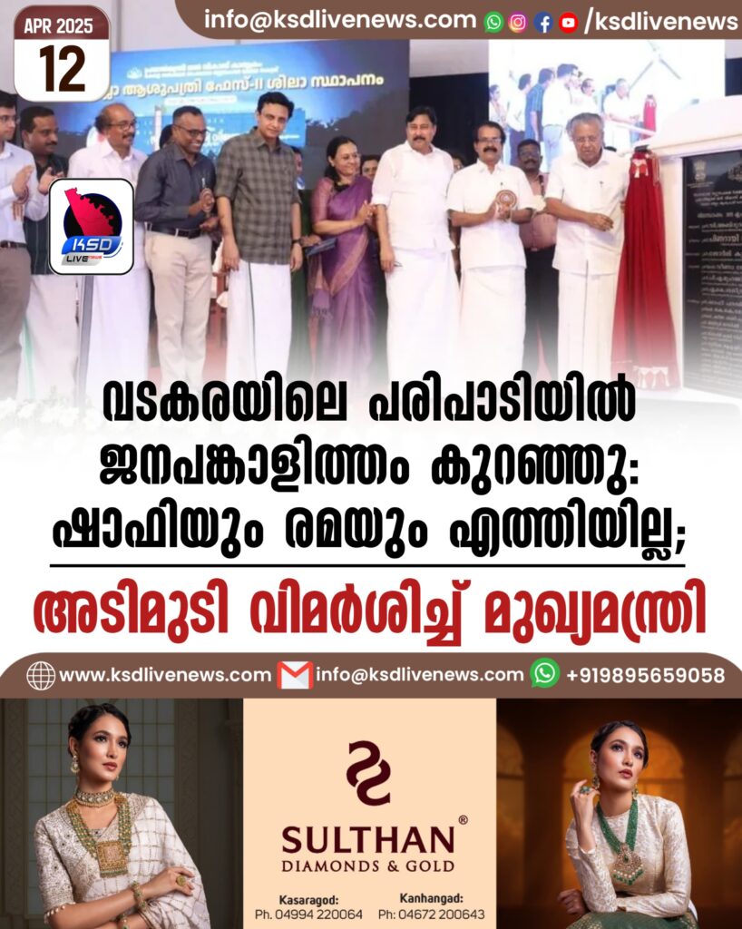 വടകരയിലെ പരിപാടിയിൽ ജനപങ്കാളിത്തം കുറഞ്ഞു, ഷാഫിയും രമയും എത്തിയില്ല; അടിമുടി വിമർശിച്ച് മുഖ്യമന്ത്രി