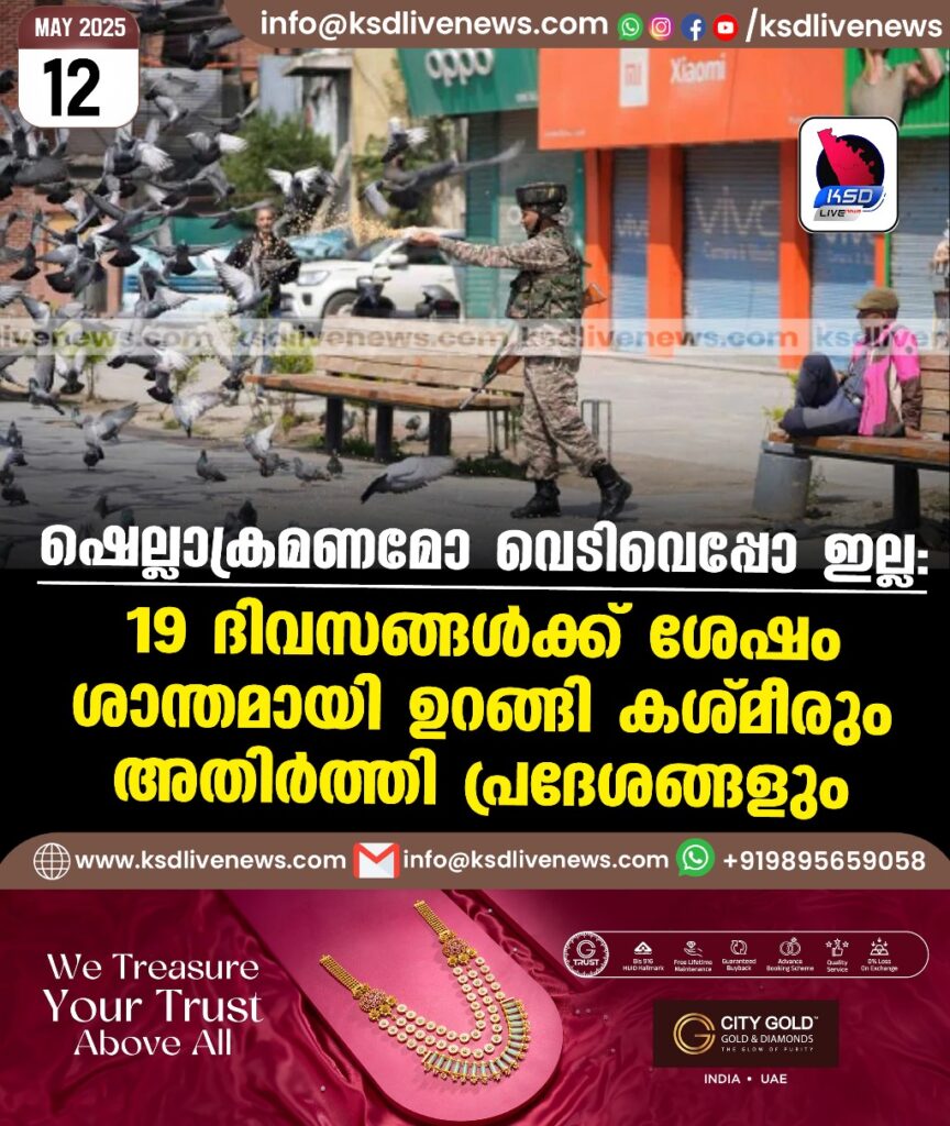 ഷെല്ലാക്രമണമോ വെടിവെപ്പോ ഇല്ല; 19 ദിവസങ്ങൾക്ക് ശേഷം ശാന്തമായി ഉറങ്ങി കശ്മീരും അതിർത്തി പ്രദേശങ്ങളും