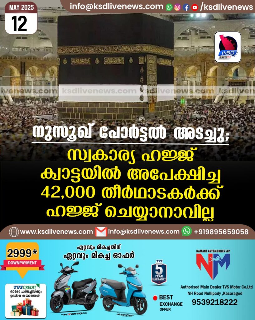 നുസൂഖ് പോർട്ടല് അടച്ചു; സ്വകാര്യ ഹജ്ജ് ക്വാട്ടയില് അപേക്ഷിച്ച 42,000 തീർഥാടകർക്ക് ഹജ്ജ് ചെയ്യാനാവില്ല
