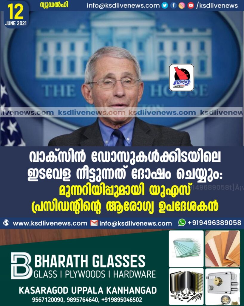 വാക്‌സിന്‍ ഡോസുകള്‍ക്കിടയിലെ ഇടവേള നീട്ടുന്നത് ദോഷം ചെയ്യും: മുന്നറിയിപ്പുമായി യുഎസ് പ്രസിഡന്റിന്റെ ആരോഗ്യ ഉപദേശകന്‍