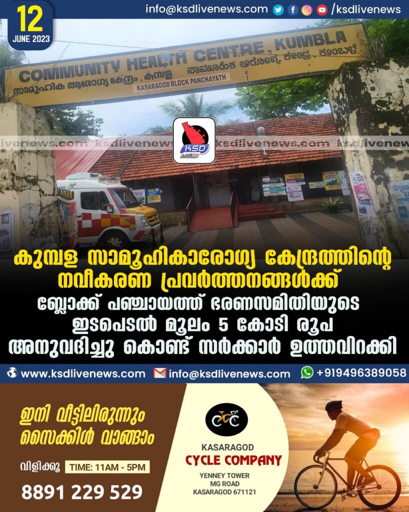 കുമ്പള സാമൂഹികാരോഗ്യ കേന്ദ്രത്തിന്റെ നവീകരണ പ്രവർത്തനങ്ങൾക്ക് ബ്ലോക്ക് പഞ്ചായത്ത് ഭരണ സമിതിയുടെ ഇടപെടൽ മൂലം 5 കോടി രൂപ അനുവദിച്ചു കൊണ്ട് സർക്കാർ ഉത്തവിറക്കി