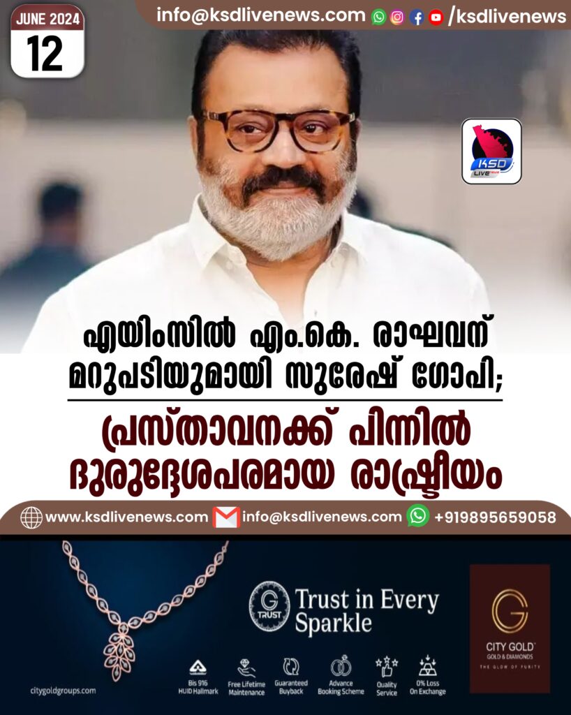 എയിംസില്‍ എം.കെ. രാഘവന് മറുപടിയുമായി സുരേഷ് ഗോപി; പ്രസ്താവനക്ക് പിന്നില്‍ ദുരുദ്ദേശപരമായ രാഷ്ട്രീയം