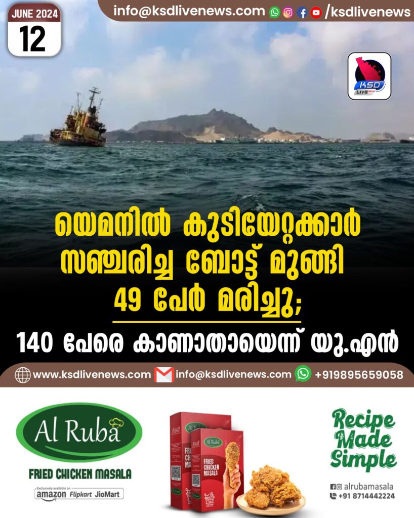 യെമനിൽ കുടിയേറ്റക്കാർ സഞ്ചരിച്ച ബോട്ട് മുങ്ങി 49 പേർ മരിച്ചു; 140 പേരെ കാണാതായെന്ന് യു.എൻ