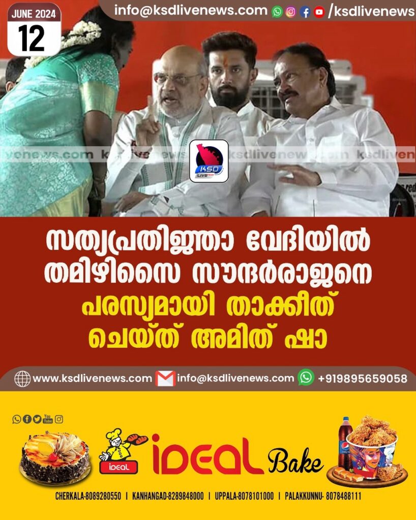 സത്യപ്രതിജ്ഞാ വേദിയിൽ തമിഴിസൈ സൗന്ദർരാജനെ പരസ്യമായി താക്കീത് ചെയ്ത് അമിത് ഷാ– വിഡിയോ