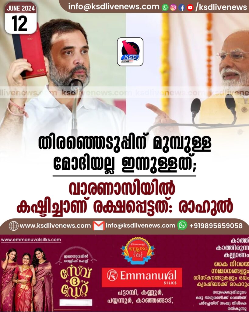 തിരഞ്ഞെടുപ്പിന് മുമ്പുള്ള മോദിയല്ല ഇന്നുള്ളത്; വാരണാസിയില് കഷ്ടിച്ചാണ് രക്ഷപ്പെട്ടത്: രാഹുല് ഗാന്ധി