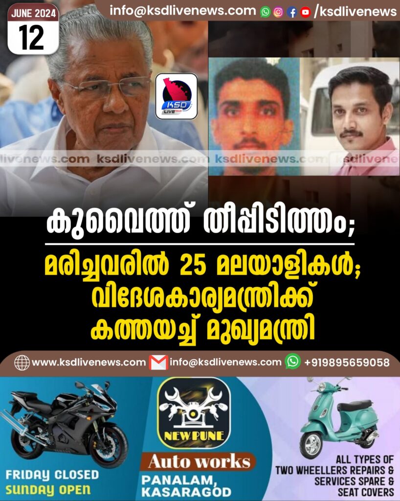 കുവൈത്ത് തീപിടിത്തം: മരിച്ചവരിൽ 9 മലയാളികൾ; വിദേശകാര്യമന്ത്രിക്ക് കത്തയച്ച് മുഖ്യമന്ത്രി