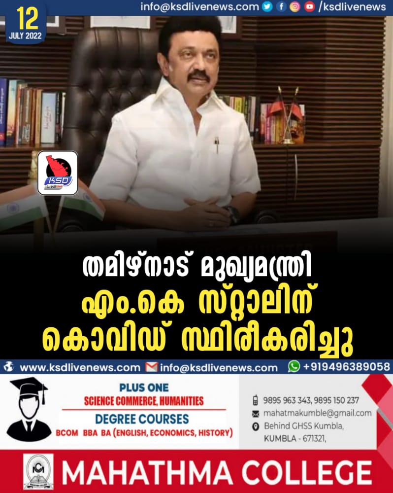 തമിഴ്നാട് മുഖ്യമന്ത്രി എം കെ സ്റ്റാലിന് കൊവിഡ് 19 സ്ഥിരീകരിച്ചു