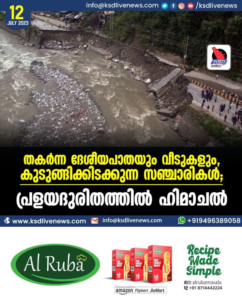 തകര്ന്ന ദേശീയപാതയും വീടുകളും, കുടുങ്ങിക്കിടക്കുന്ന സഞ്ചാരികള്; പ്രളയദുരിതത്തില് ഹിമാചല്