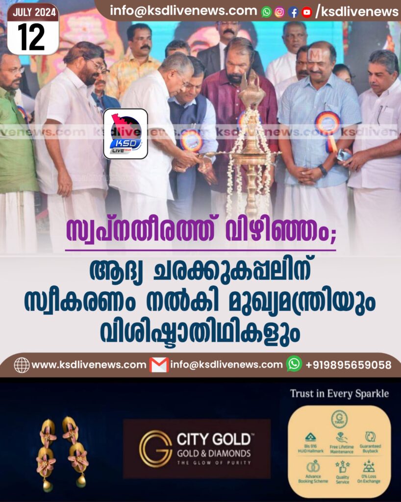 സ്വപ്നതീരത്ത് വിഴിഞ്ഞം: ആദ്യ ചരക്കുകപ്പലിന് സ്വീകരണം നല്കി മുഖ്യമന്ത്രിയും വിശിഷ്ടാതിഥികളും