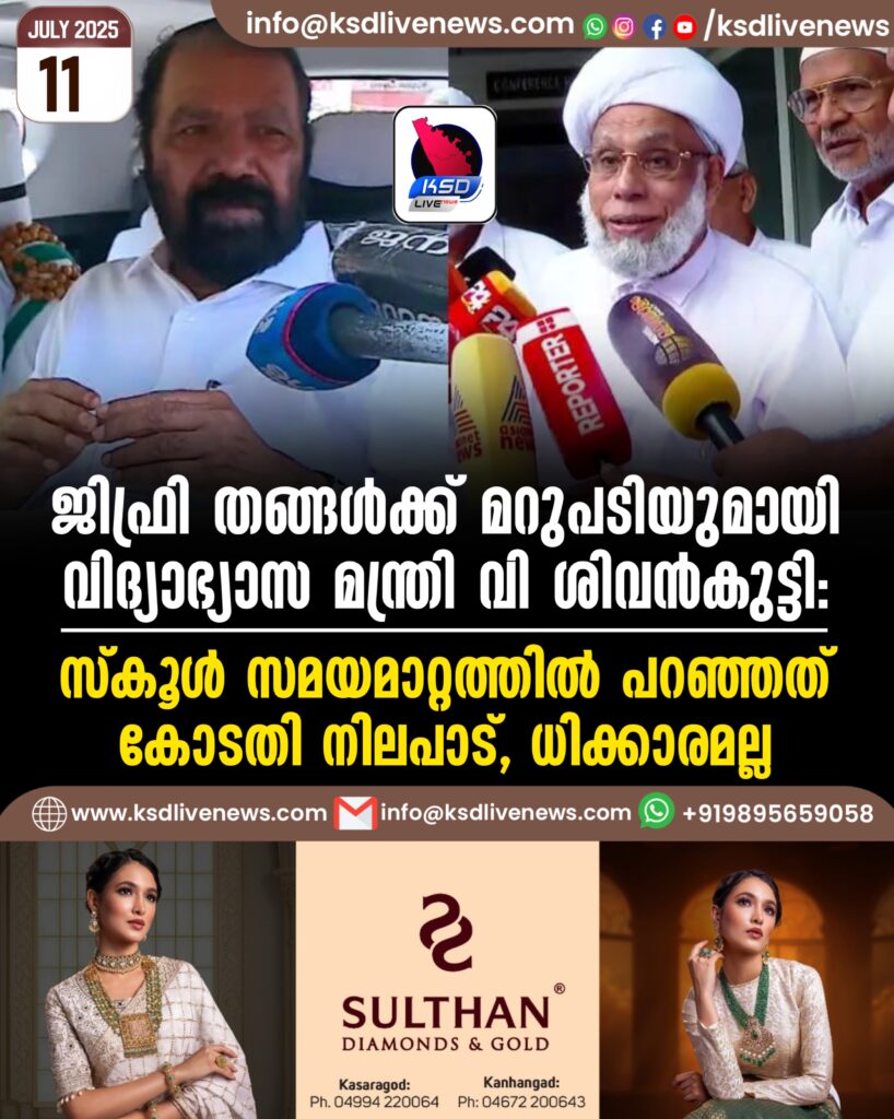 ജിഫ്രി തങ്ങള്‍ക്ക് മറുപടിയുമായി വിദ്യാഭ്യാസ മന്ത്രി വി ശിവൻകുട്ടി; ‘സ്‌കൂള്‍ സമയമാറ്റത്തില്‍ പറഞ്ഞത് കോടതി നിലപാട്, ധിക്കാരമല്ല